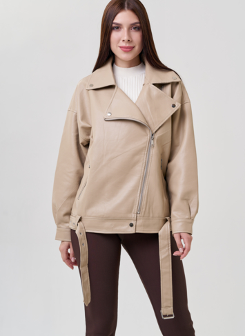 Бежевая куртка в стиле оверсайз точно попадет вам в сердце! Светло-бежевый цвет позволит подбирать к куртке разные образы. Материал эко кожи устойчив к холодам и повреждениям. Модель застегивается на молнию и кнопки. Имеется ремень и карманы на молнии. Рукава с манжетами на кнопках. Фасон оверсайз и спущенные плечи добавят комфорт.
