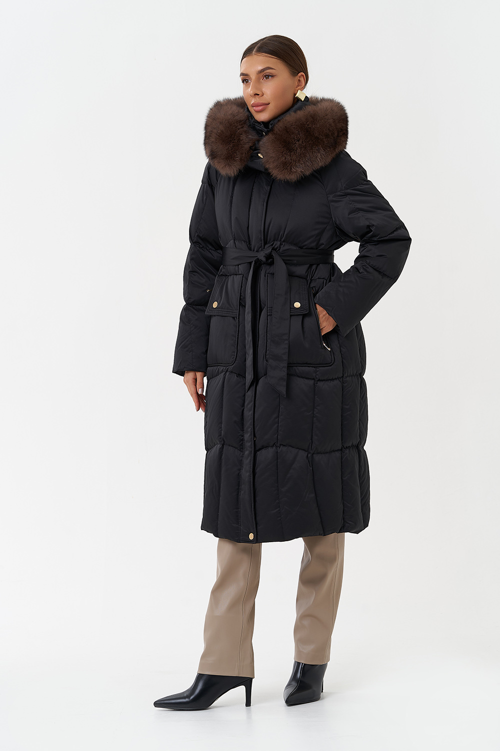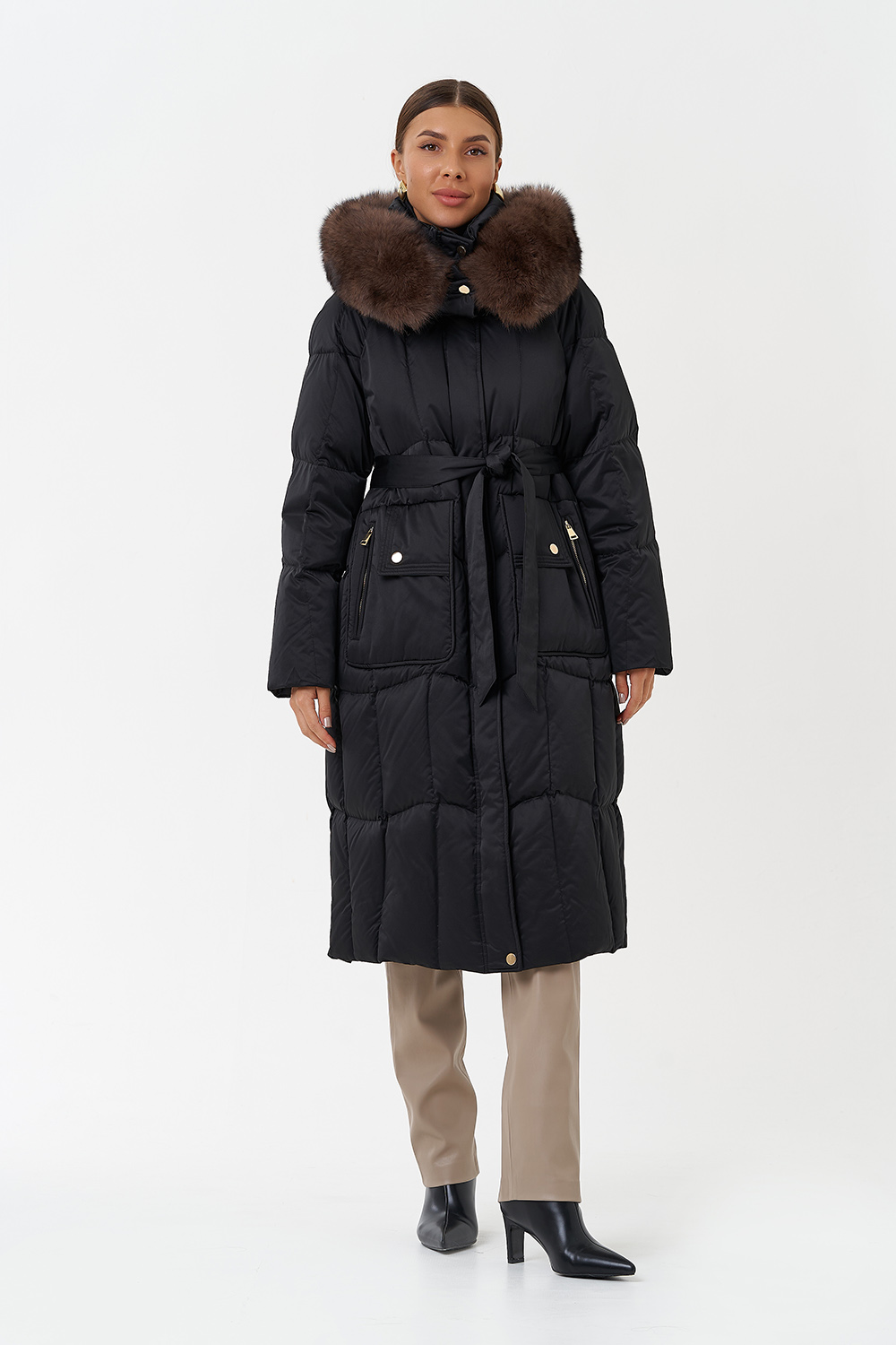 Крой воротника - капюшон, отделка песец под соболь