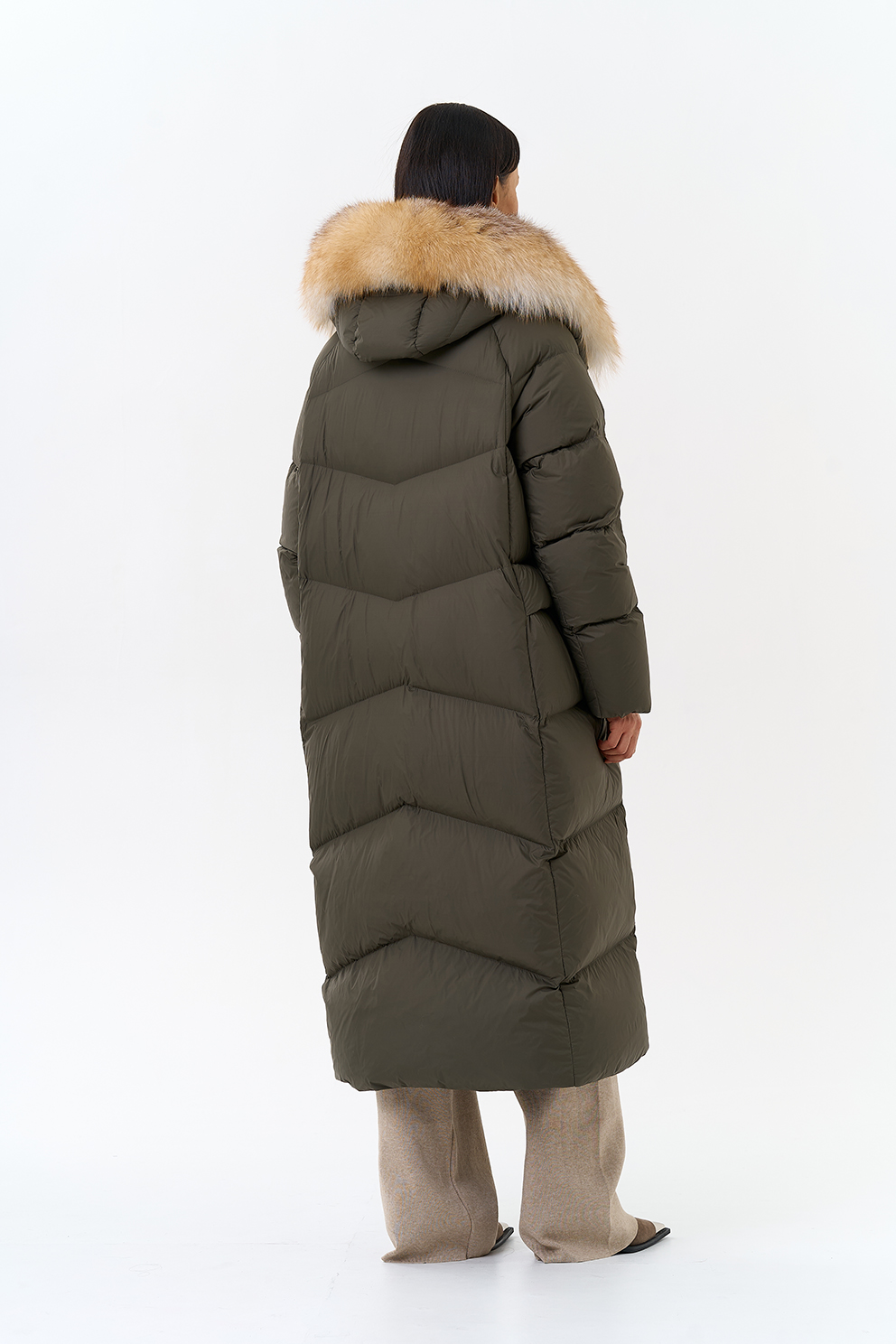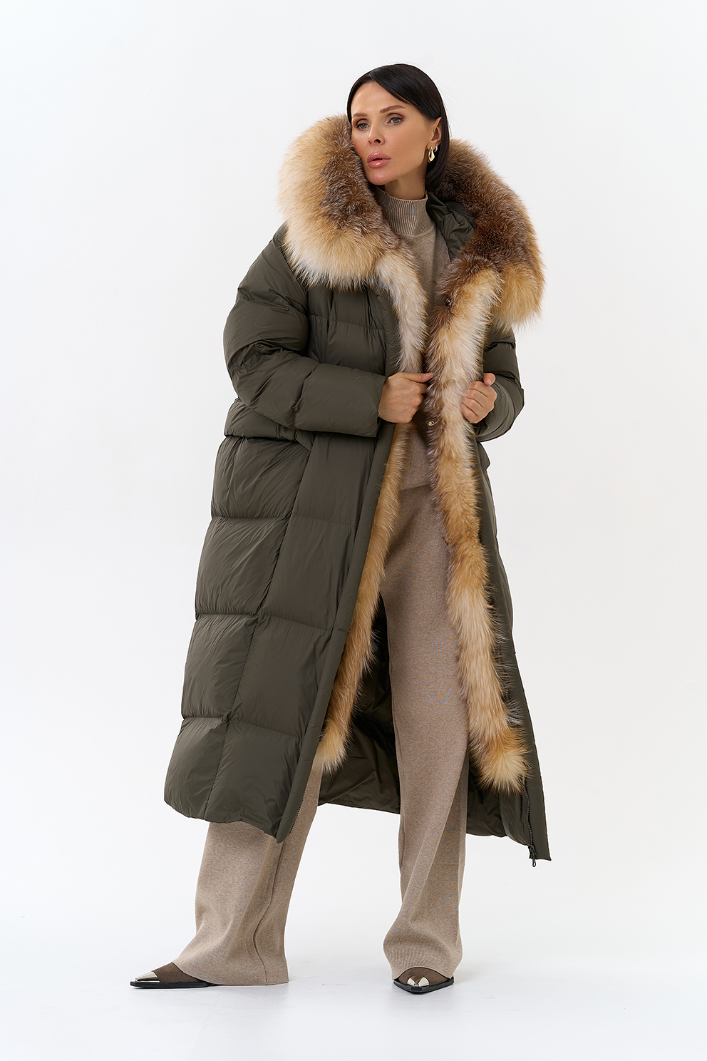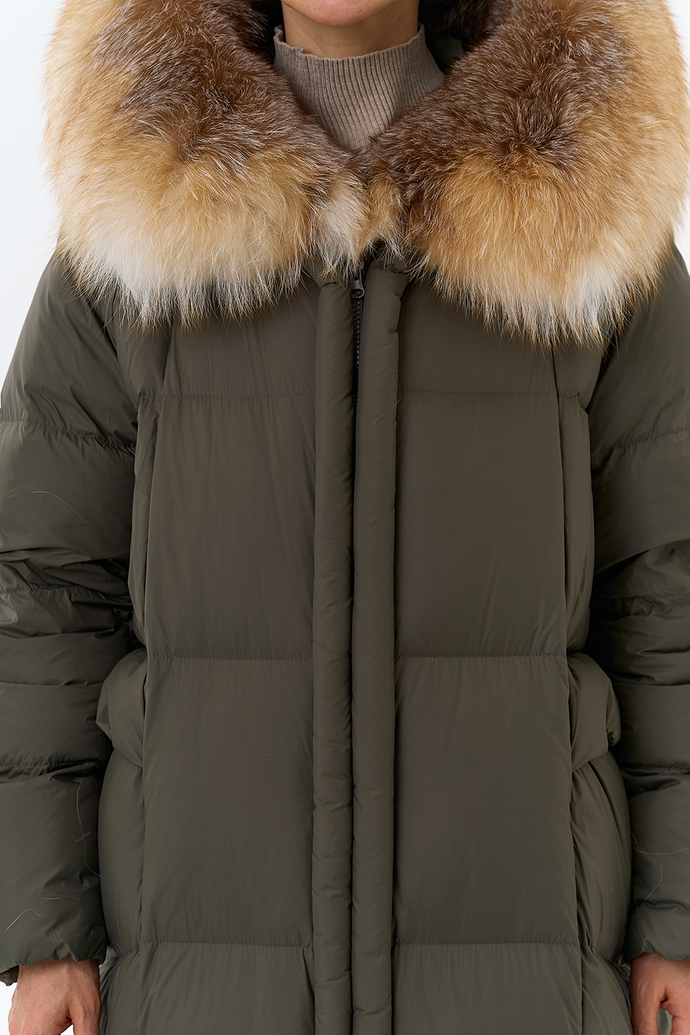 Крой воротника - капюшон, отделка лиса рыжая