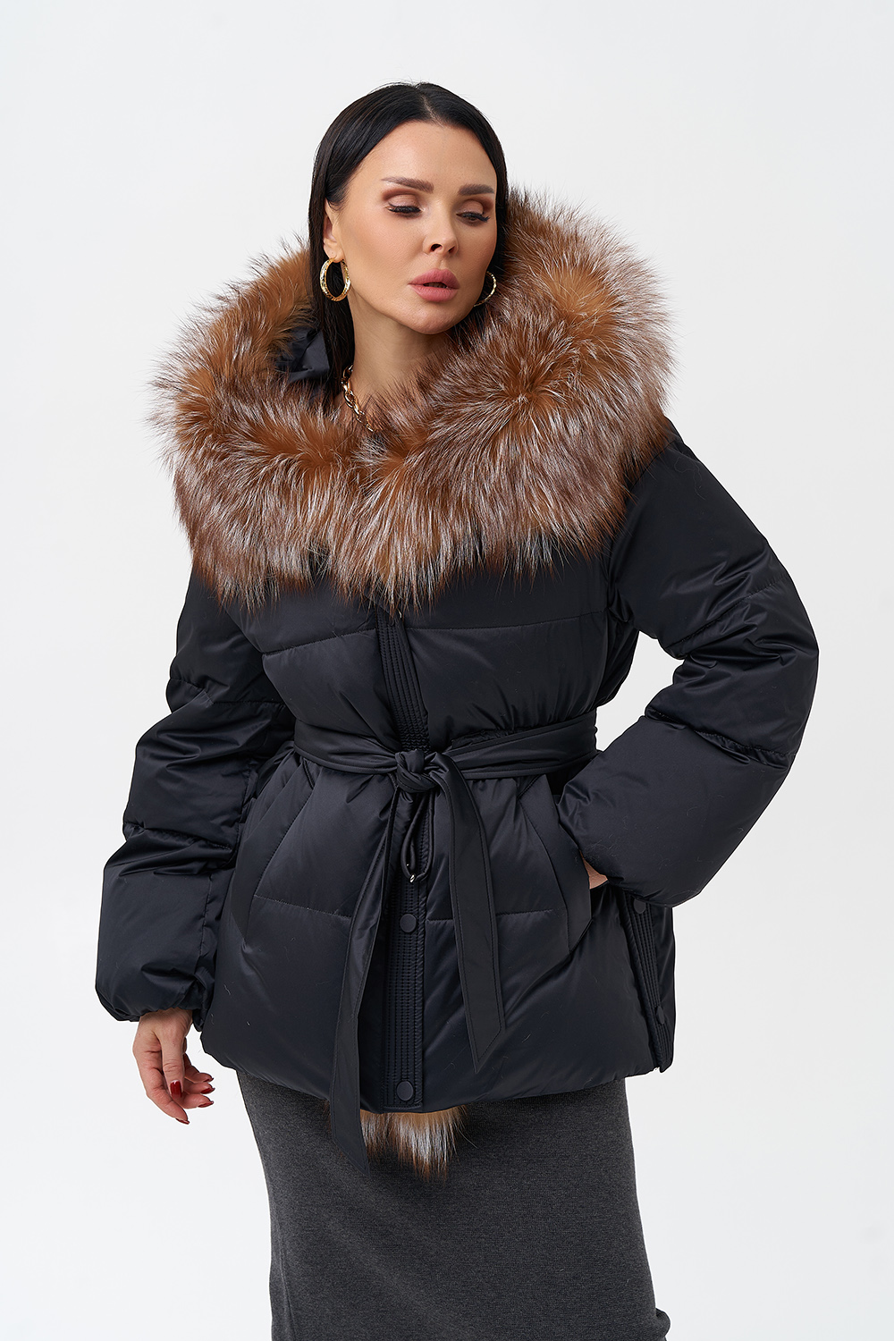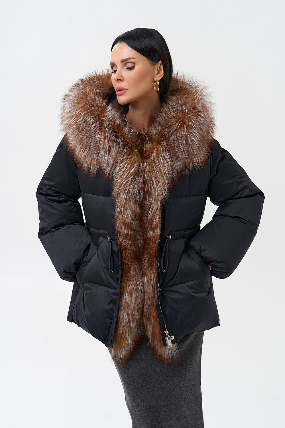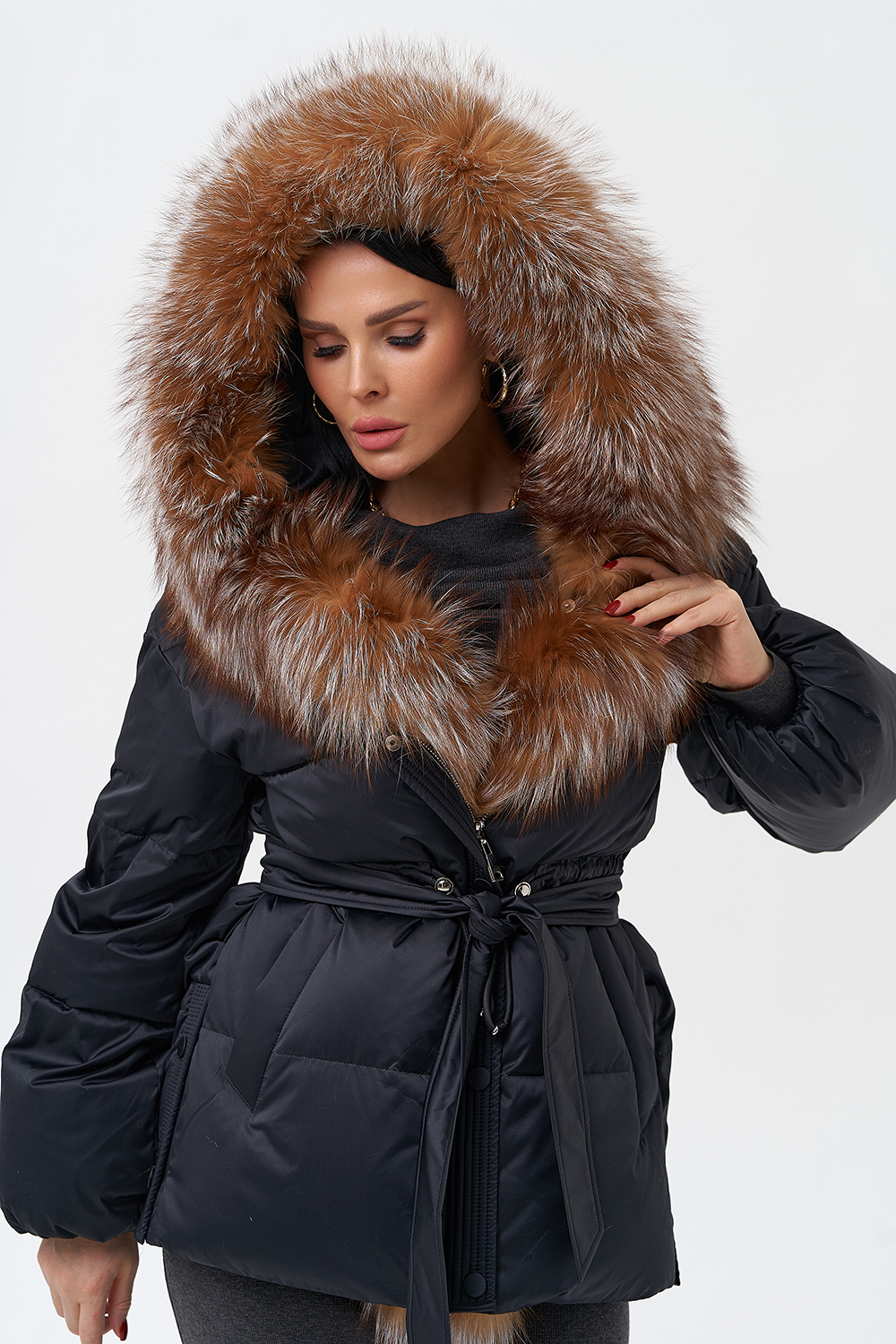 Крой воротника - капюшон, отделка лиса