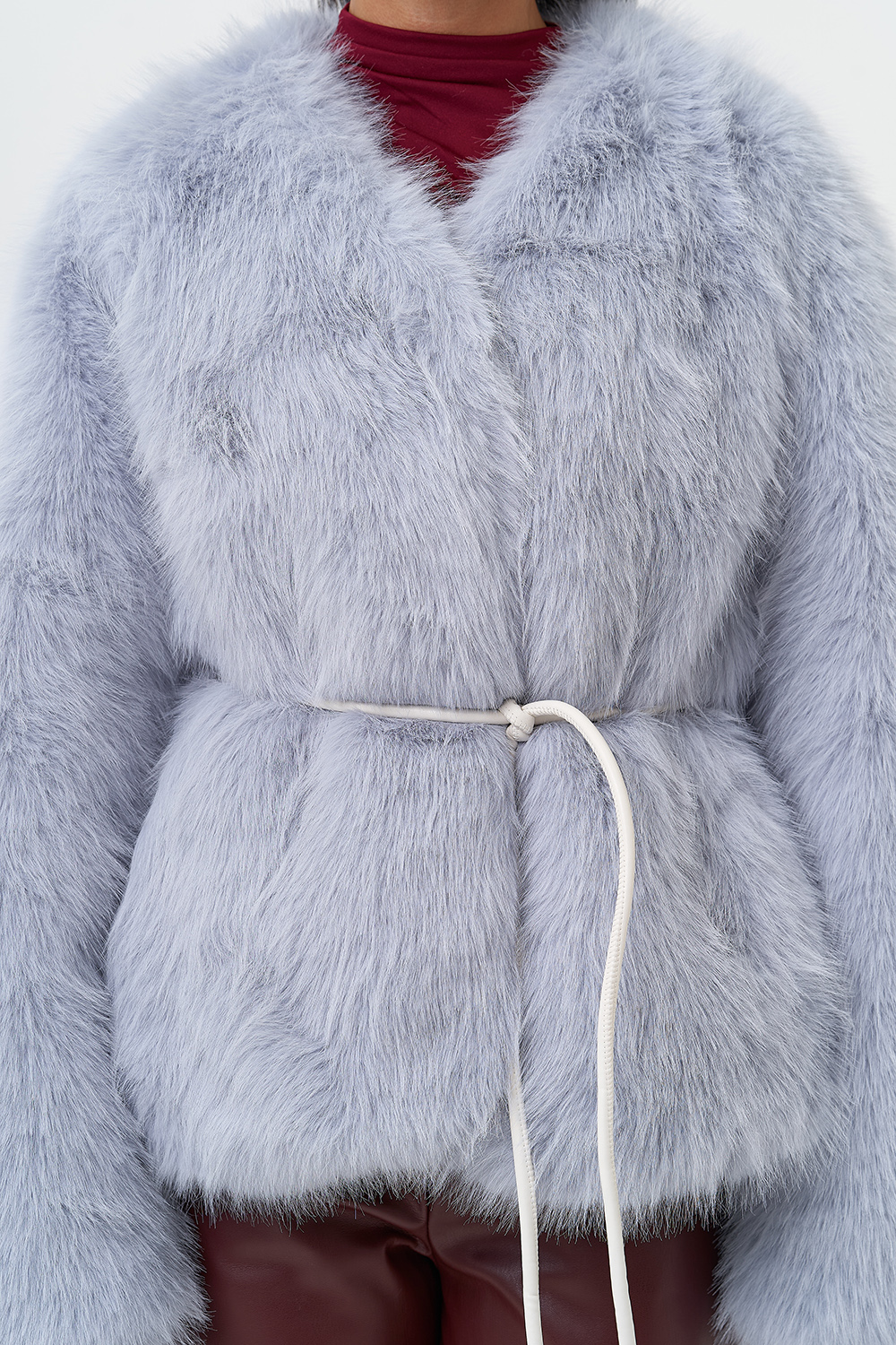 Фасон - прямой Длина изделия - 60 см Цвет - голубой Материал - экомех Состав полотна - полиэстер 100% Подкладка - полиэстер 100% Вид застежки -крючки, пояс Вид ворота - V-образный Фасон рукава - спущенное плечо, длинный |