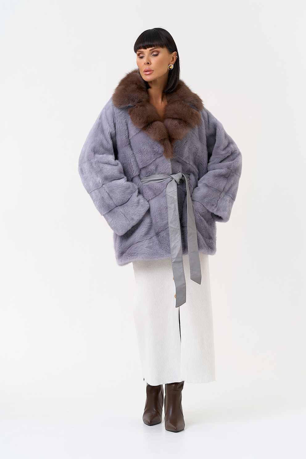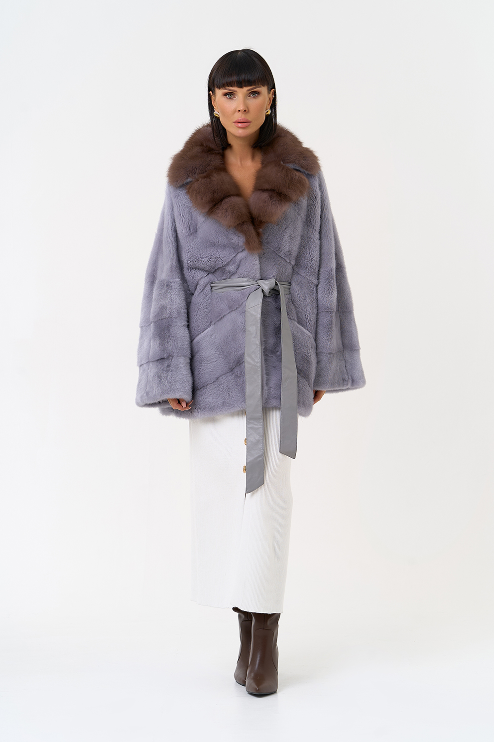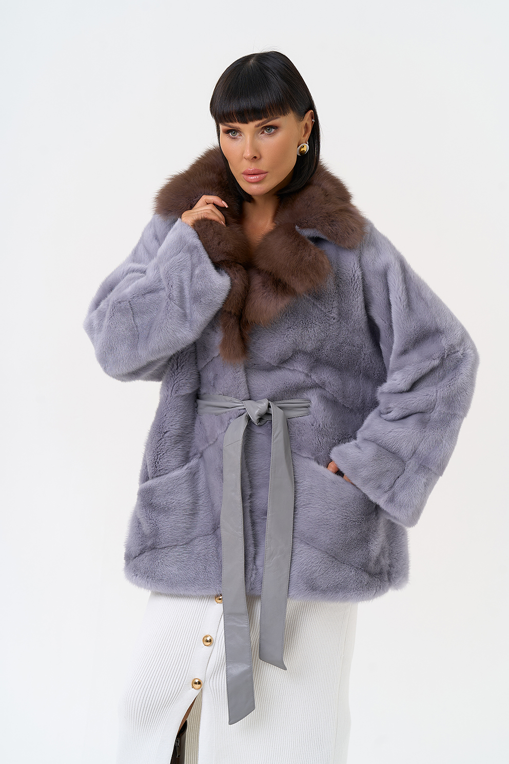 Тип ворота - английский воротник, отделка куница